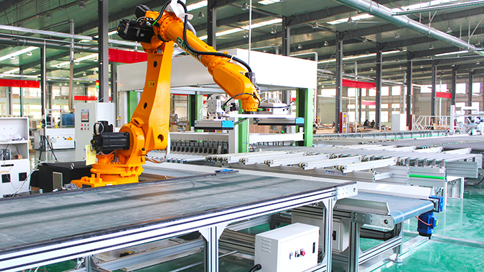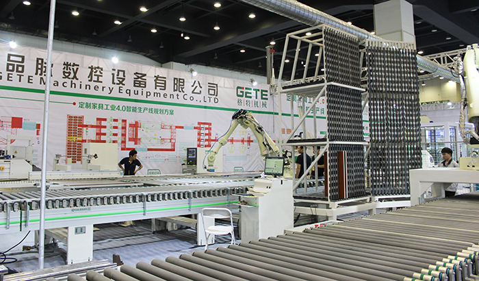 品脈數(shù)控定制家具工業(yè)4.0主要是以無人化工廠為主,打造工業(yè)4.0的生產(chǎn)線,把開料、封邊、鉆孔、分揀、包裝等流程一體化,從而實現(xiàn)無人式的工廠生產(chǎn)模式。整套定制家具工業(yè)4.0硬件部分涵蓋開料設備、多軸搬運機器人、封邊回轉(zhuǎn)線系統(tǒng)、動力傳輸線、龍門抓料機、六面鉆打孔設備、自動分揀系統(tǒng)等通過總控系統(tǒng)與智能軟件控制實現(xiàn)自動化生產(chǎn)。