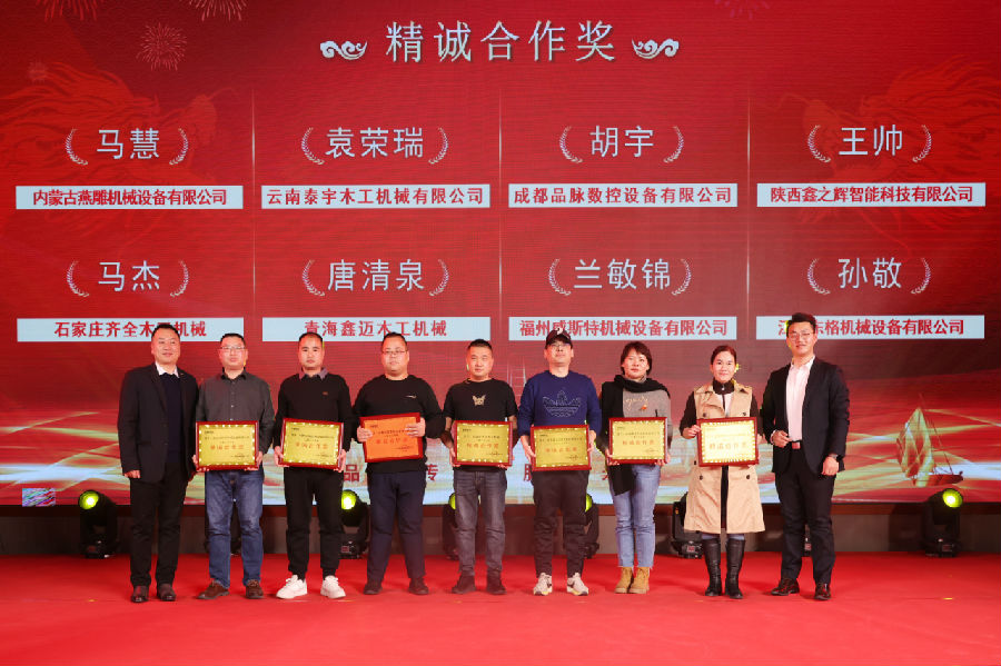 中國木材與木制品流通協(xié)會全屋定制分會執(zhí)行秘書長、山東省家具協(xié)會定制家居專委會秘書長徐寶傳,山東省家具協(xié)會副秘書長王騰,會員部副主任呂磊頒獎。